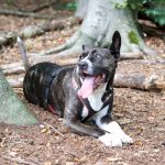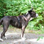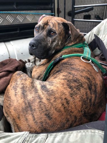 Zufälligerweise war ausgerechnet tags zuvor ein Molosserchen ins Tierheim gekommen, das regelrecht nach menschlicher Zuneigung schrie: ein junger, bildhübscher und zierlicher Presa Canario x Hollandse Herder…. also eine recht anspruchsvolle Mischung. Aber er hat uns auf Anhieb so gut gefallen, dass wir einfach mal mit ihn in den großen Auslauf gewandert sind und ihm die Mädchen vorgestellt haben.
