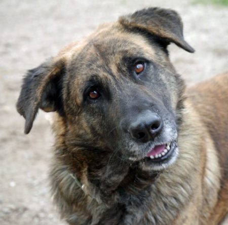 Als mich Karin vom Tierschutz Wörrstadt bat, einen ihrer Neuzugänge bei der Molosser-Vermittlungshilfe vorzustellen, „lachte“ der Bursche mich mit seinem offenen Blick an…und da die Beschreibung sich so las, als ob er für uns perfekt sein könnte, fasste ich mir ein Herz und sprach meinen Mann auf Boogie an. Begeistert war er natürlich nicht, zumal es sich bei dem Rüden um einen Herdenschutzhund (Cao da Serra da Estrela) handelt, doch vertraut er mir und Karin soweit, dass er sich bereit erklärte, mit uns ins Tierheim zu fahren, um den Großen kennenzulernen.