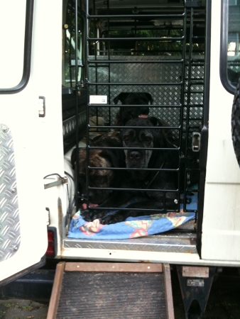 Heute haben wir die Hunde während der Wartezeiten im Auto erstmals nicht separiert… und Felicitas hat nicht einmal gemosert, als sich Simba ganz dicht neben sie legte und zu allem Überfluss noch an ihrer Pfote rumleckte.