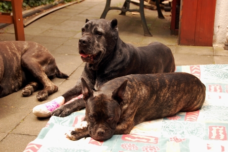 Nachdem sich die Hunde daran gewöhnt hatten, dass teilweise riesige Holzstücke über den Zaun flogen und sie in einem respektvollen und sicheren Abstand blieben, ließen sie es sich bei wunderschönem Wetter draußen gut gehen.
