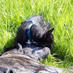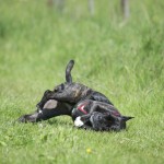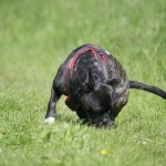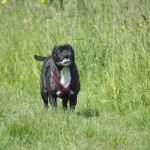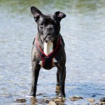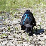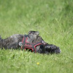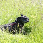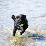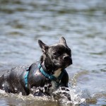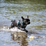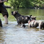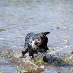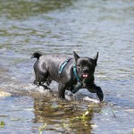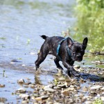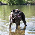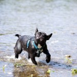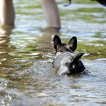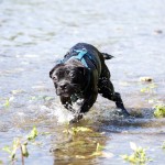 Nachdem ihr „Papa“ mit den Großen in die Sieg gestiefelt ist, stapfte Matilda tapfer hinterher….und verlor irgendwann den Boden unter den Pfoten. Keine Panik, kein Erschrecken: sie paddelte fleißig vor sich hin, wendete formvollendet und strebte gleich wieder dem Ufer zu.