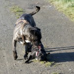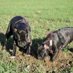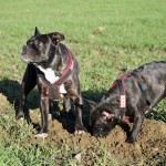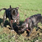Danach ging es mit frischem Elan weiter und die Wauzis gruben nicht nur Maulwurfshügel um, sondern spielten ausgelassen miteinander…und mampften eine Zuckerrübe nach der anderen weg!